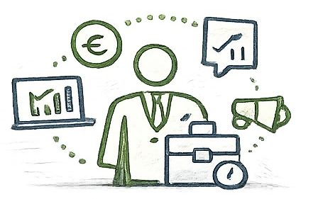 Weitere Funktionen und Aufgaben z.B. Produktion, Betriebsleitung, Einkauf, HR,... können von Experten aus meinem Netzwerk übernommen werden.